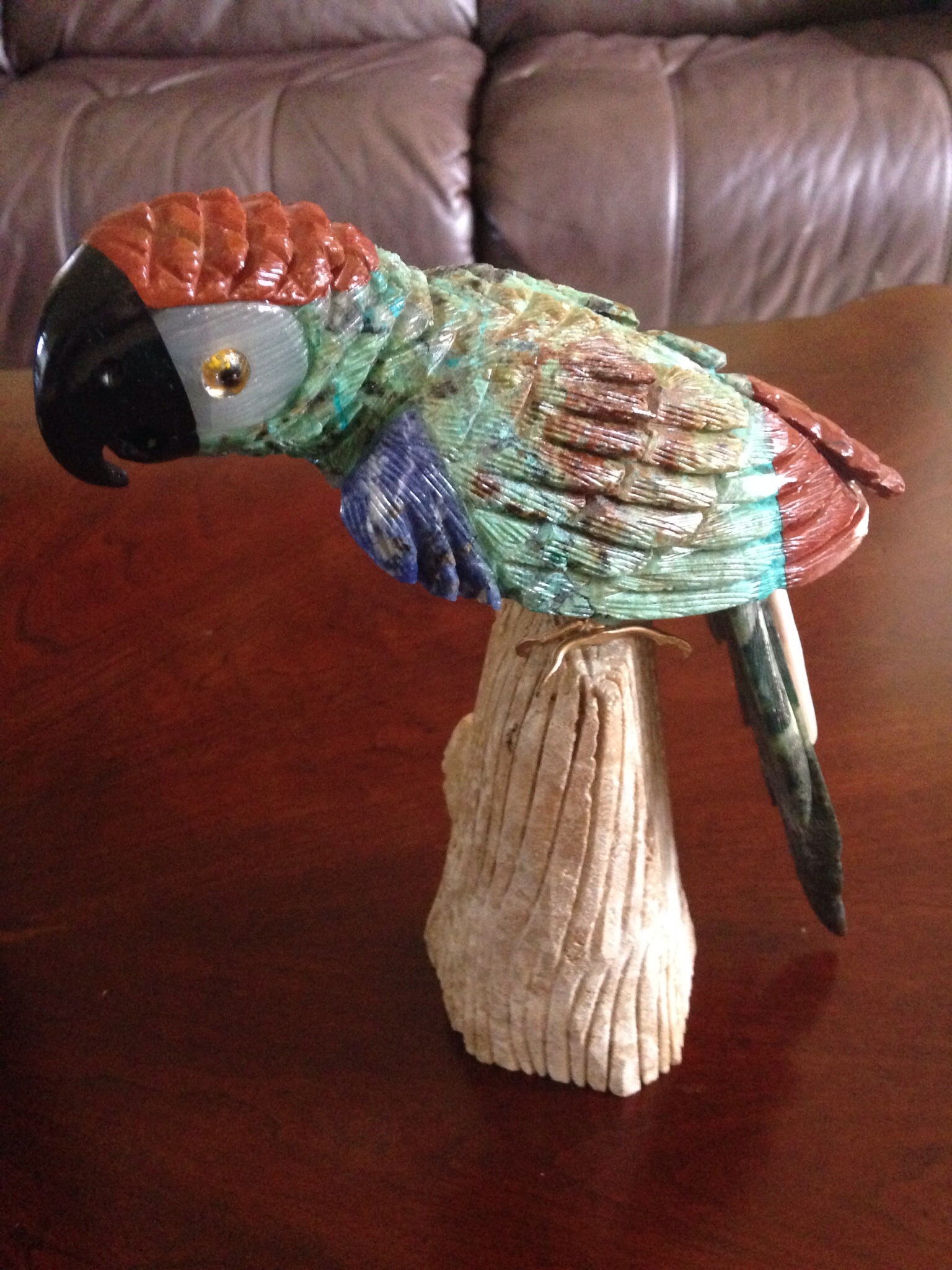 Хочу уточнить камни, из чего они сделаны. Мастер, что делал, сказал, что это хризоколла и тигровый глаз и на попугае тело тоже из хризоколлы. Однако не уверена.