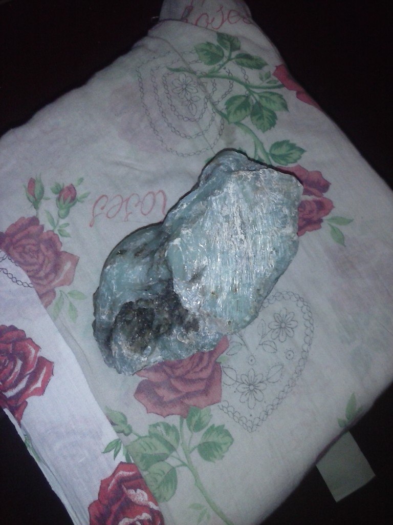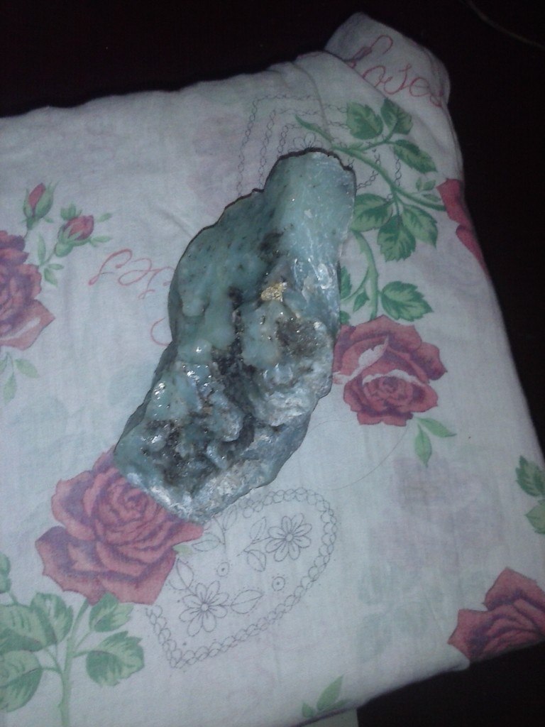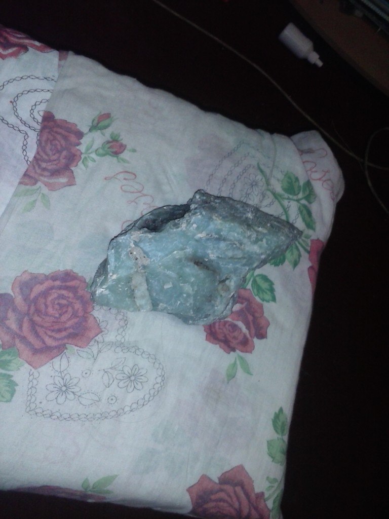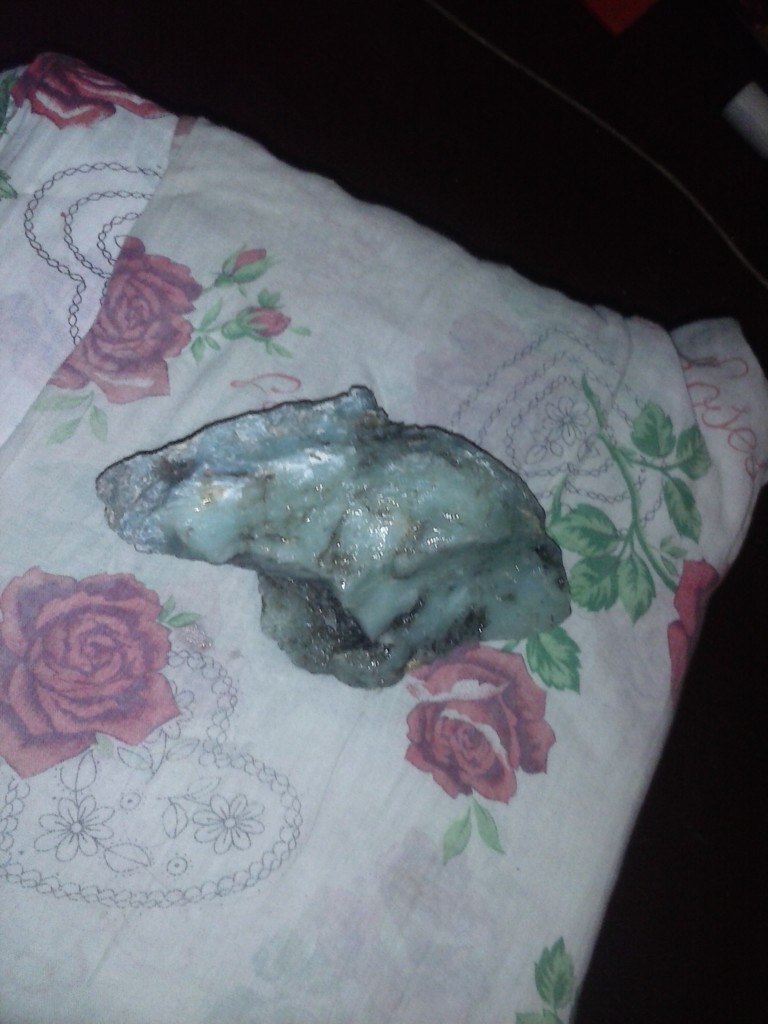 Нашли камень. Цвет: Зеленоватый. Не сильно ломкий, но чуть чуть с боков отламываются маленькие частички. Напоминает чем то стекло.