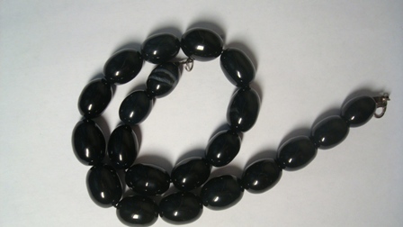 Это у меня первое изделие из чароита. Миленькое. И еще обалденные огромные бусы из черного агата, тяжелющие, но прикольные! Похожи на черные маслины.