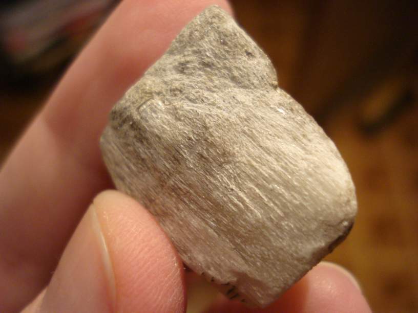 Переливается на свету, когда поворачиваешь. Твердость 3 по Моосу, и ножом царапается, и монетой. Запах такой сильный... фу. От пирита и апатита тоже ведь идет, но этот сильнее.