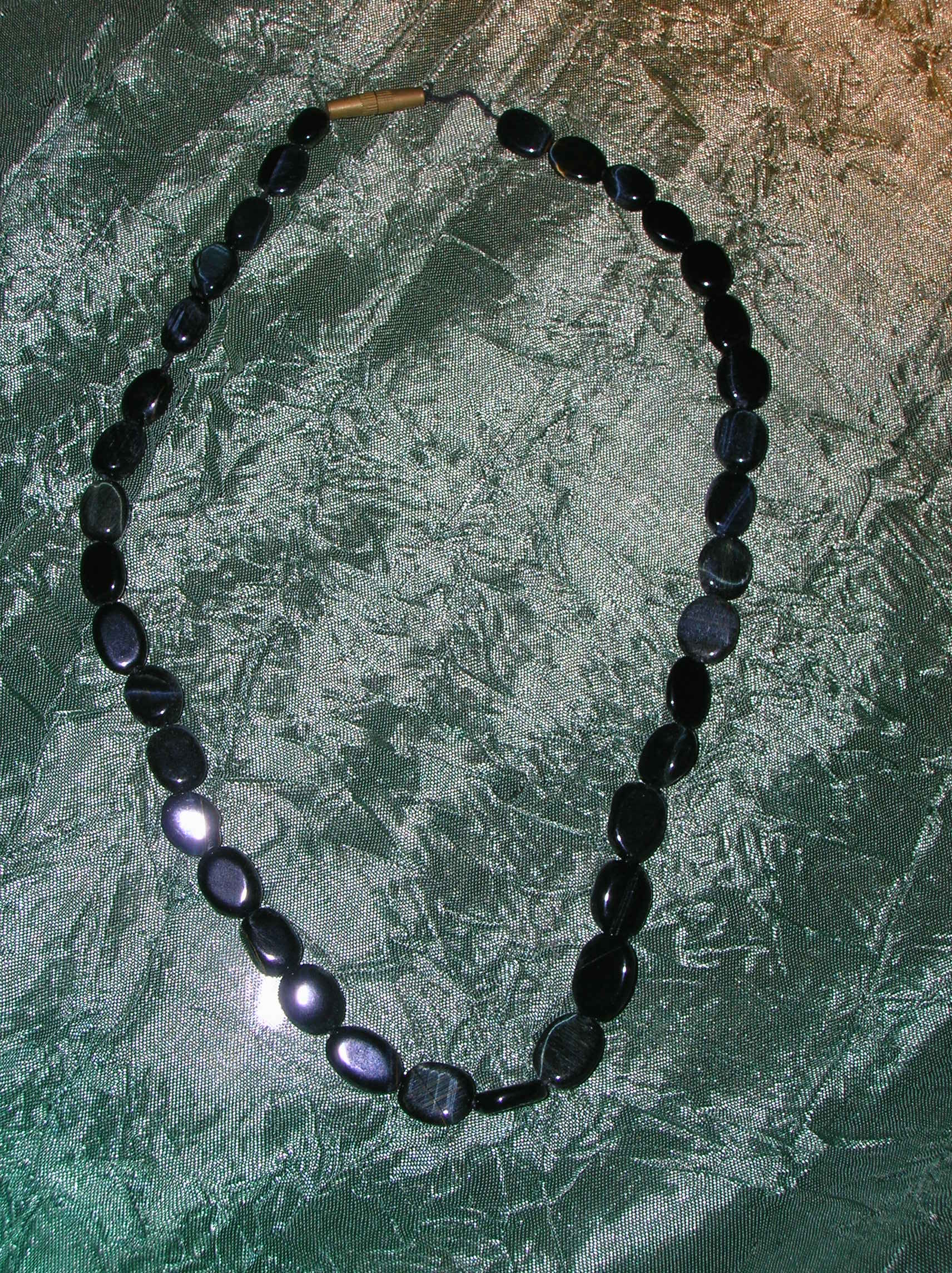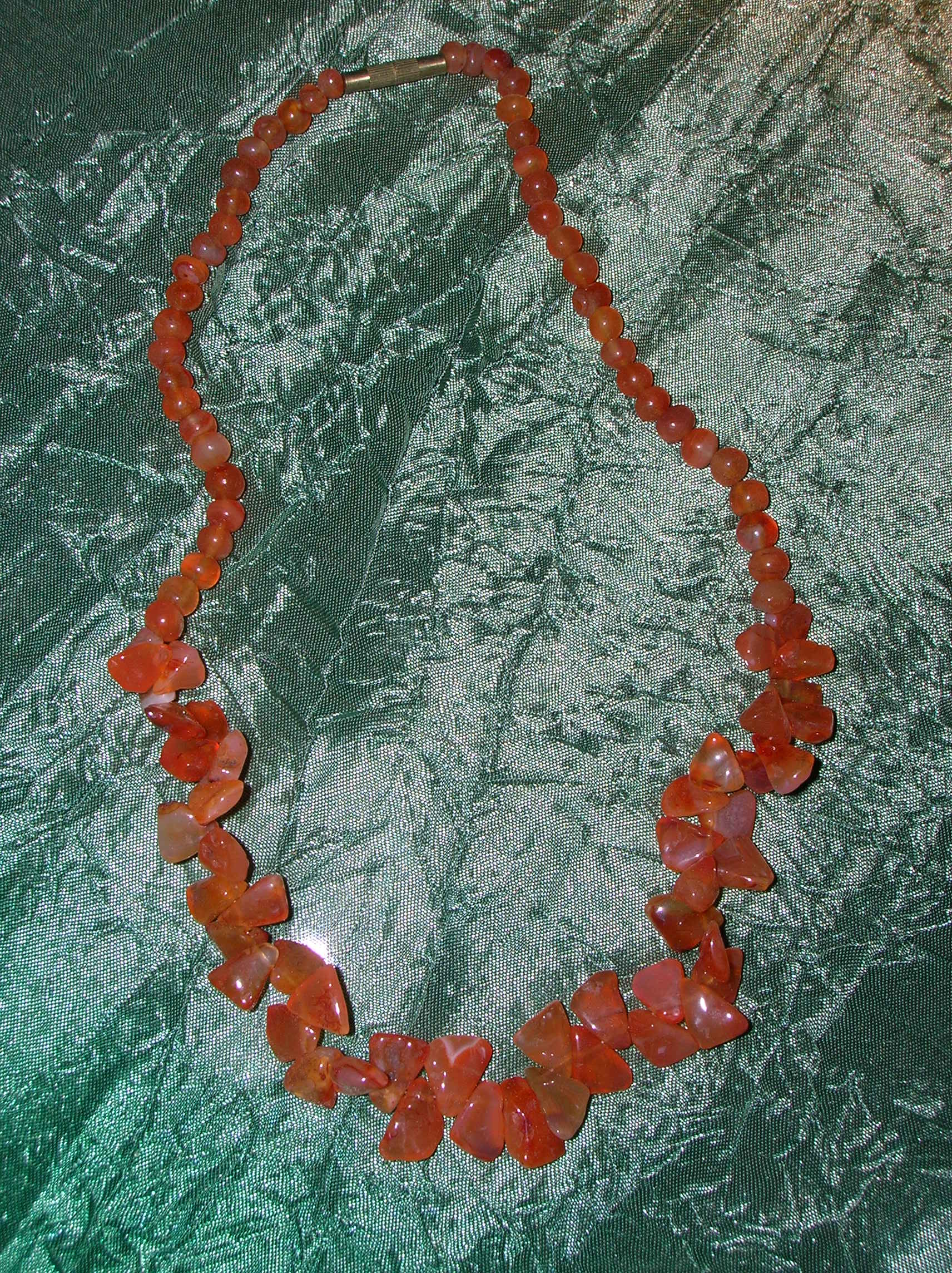бусы (сверху вниз) - соколиный глаз, гранат (возможно родолит), лунный камень (думаю, беломорит) и сердолик.