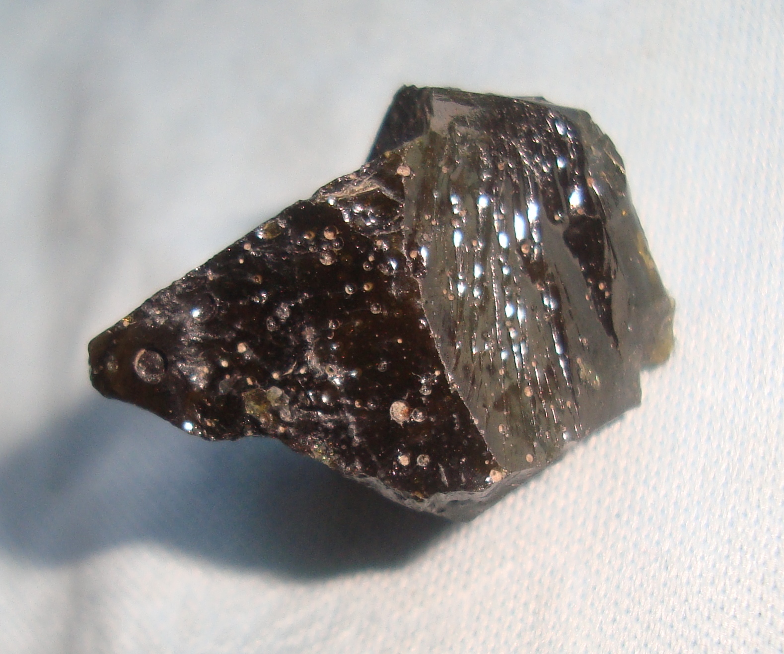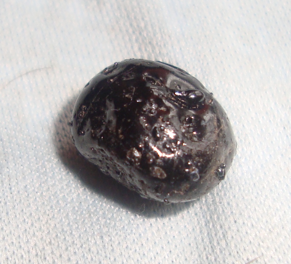 На фото не видно, но при дневном свете он прозрачный и имеет зеленоватый оттенок. И ещё они были найдены в местах, где вряд ли будут лежать шлаки.