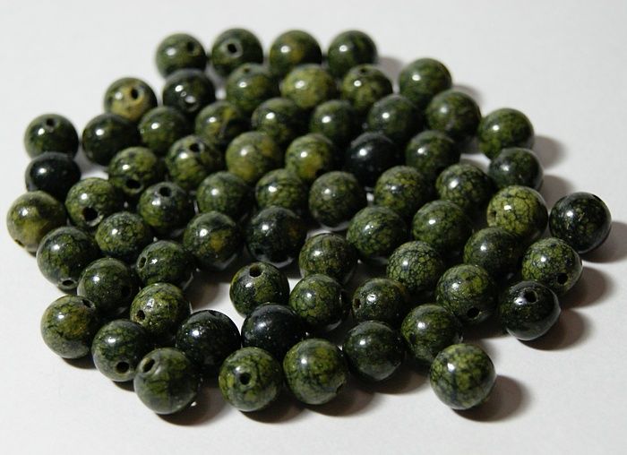 Неужели я купил подделку? У меня бусины различаются по цвету, в некоторых местах даже переливаются подобно тигровому глазу и имеют какие-то жёлтые включения (похожие на блёстки), но их очень мало. Молоточком я сломал 2 бусины, внутри они однородного тёмно-зелёного цвета, но на порошок не похоже! Купил у себя в городе.