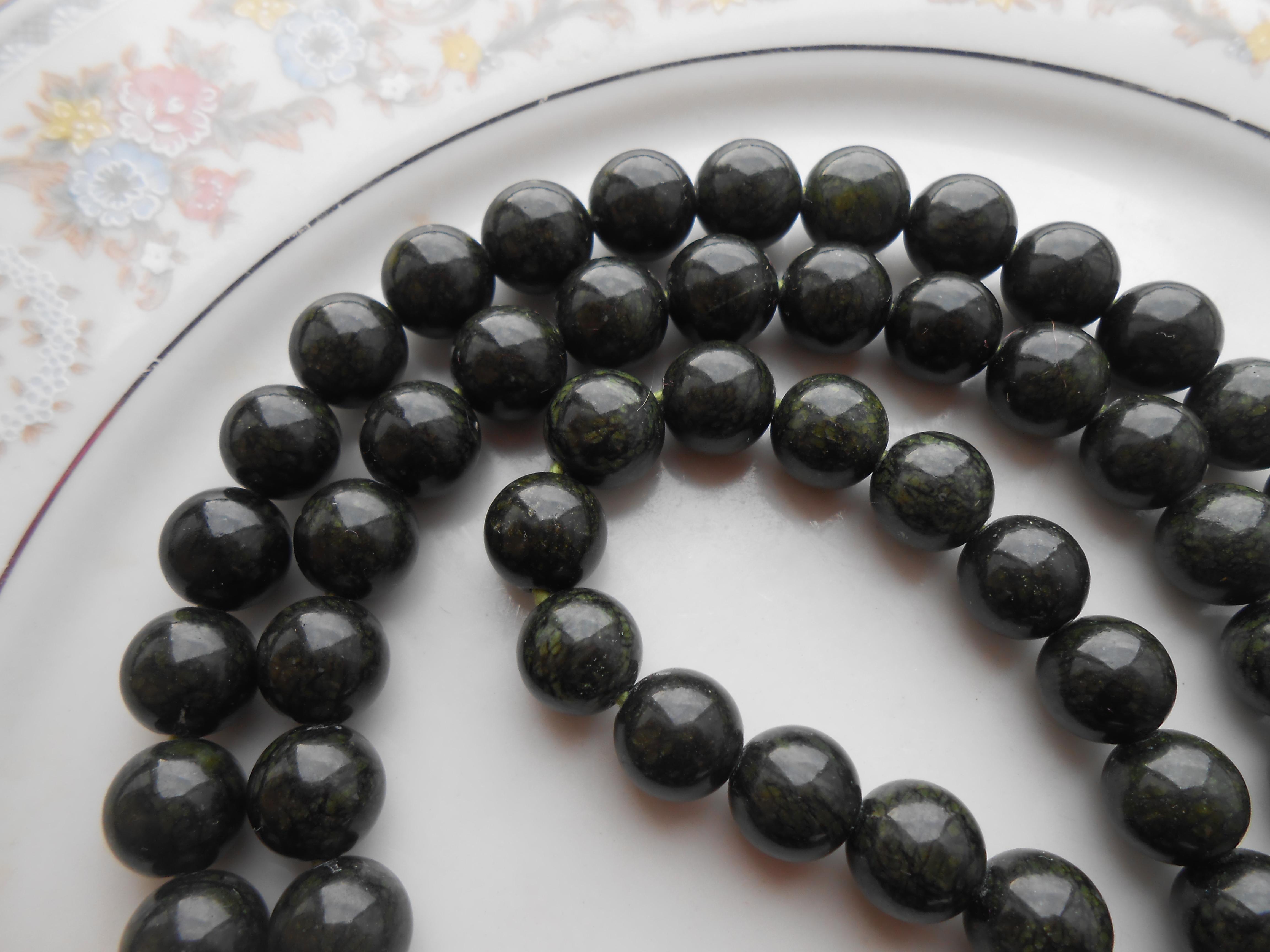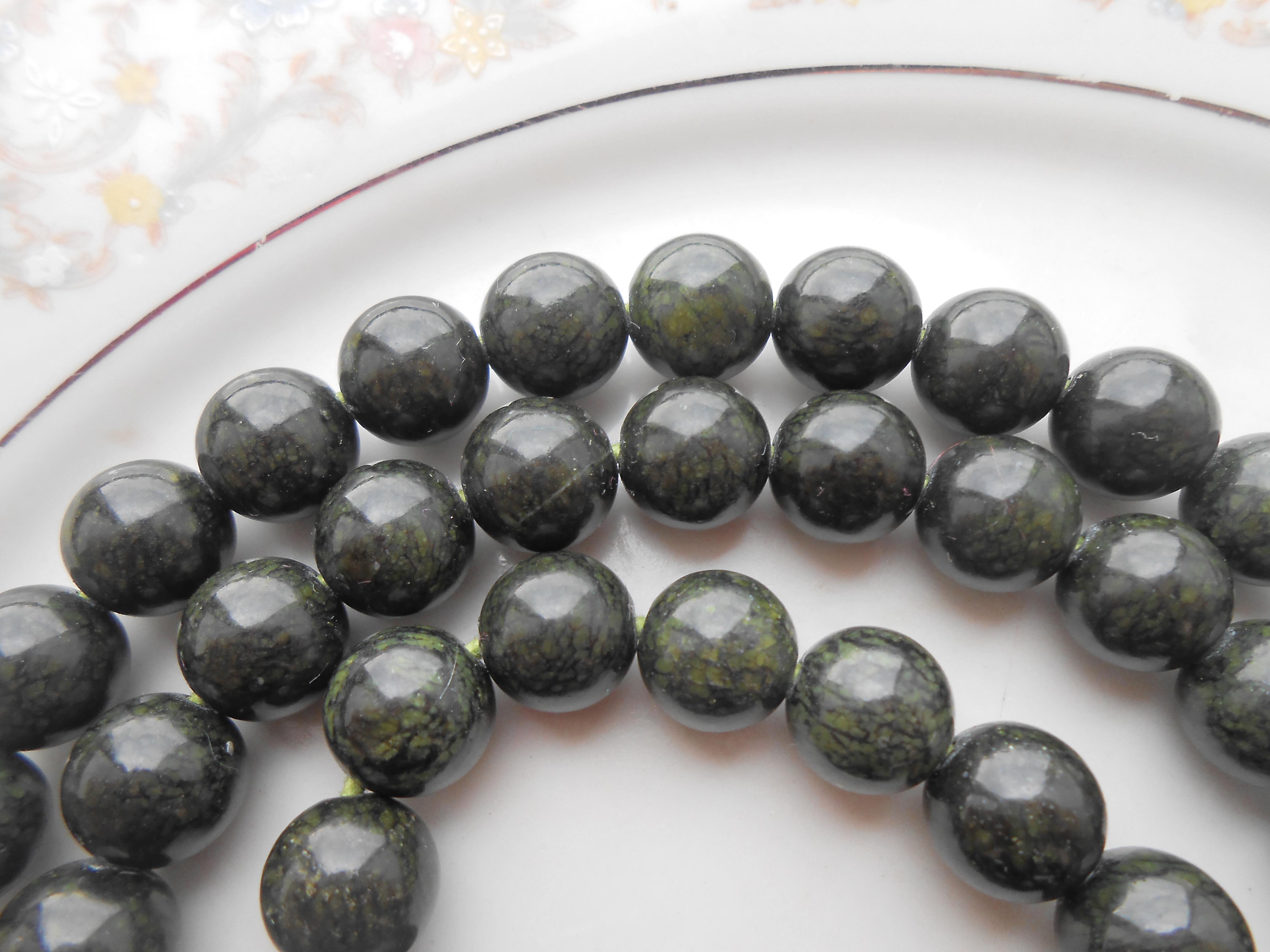 Всё-таки сделал я чётки. Скажите, змеевик натуральный или нет? (Перед кисточной — обсидиан).