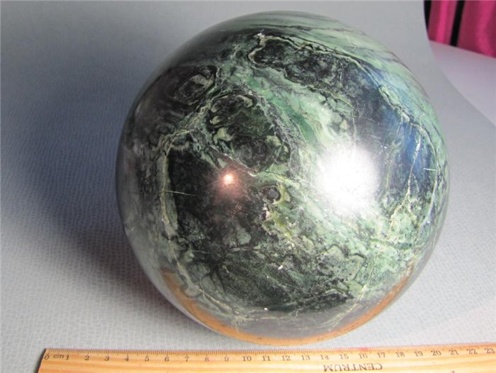 Пока не ясно. Продавец не специализируется на камнях, а продает сабж в числе прочих вещей. Заявлен как "шар из зеленого мрамора".