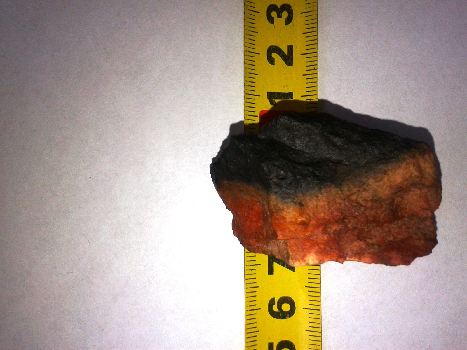 Всем здравствуйте! В Подмосковье на вершине оврага у реки был найден камень... Сказали, что это кремень. Непонятна его разновидность (чёрный или красный, откуда такой цветовой переход). Поцарапать кристаллом не выходит. Одна из сторон абсолютно чёрная без вкраплений и оттенков (на фото - отблески, чёрный цвет однородный), очень напоминает нагар... Осмелюсь предположить, что это воздействие молнии, ведь он был найден в нескольких см. от сожжённого ей дерева. Возможно ли такое? Просьба объяснить новичку :)