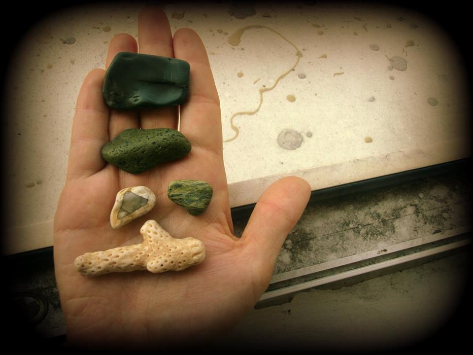 море Средиземное (Израиль) - неведомые (мне :) ) зеленые камни (на эпидот похоже, но утверждать не могу, очень мало знаю пока) и сотворенное водой "сердечко".