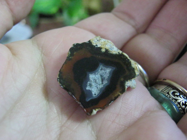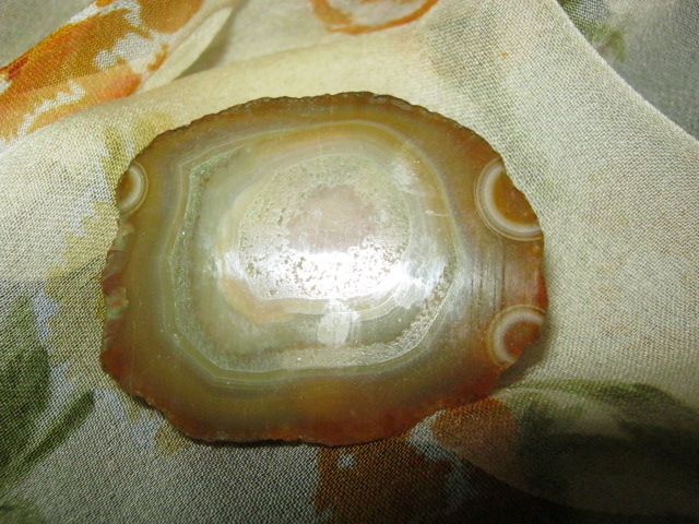 Агаты из Чернушки под Пермью. Один камушек маленький совсем, но красивый. Два других – срезы одного камня.