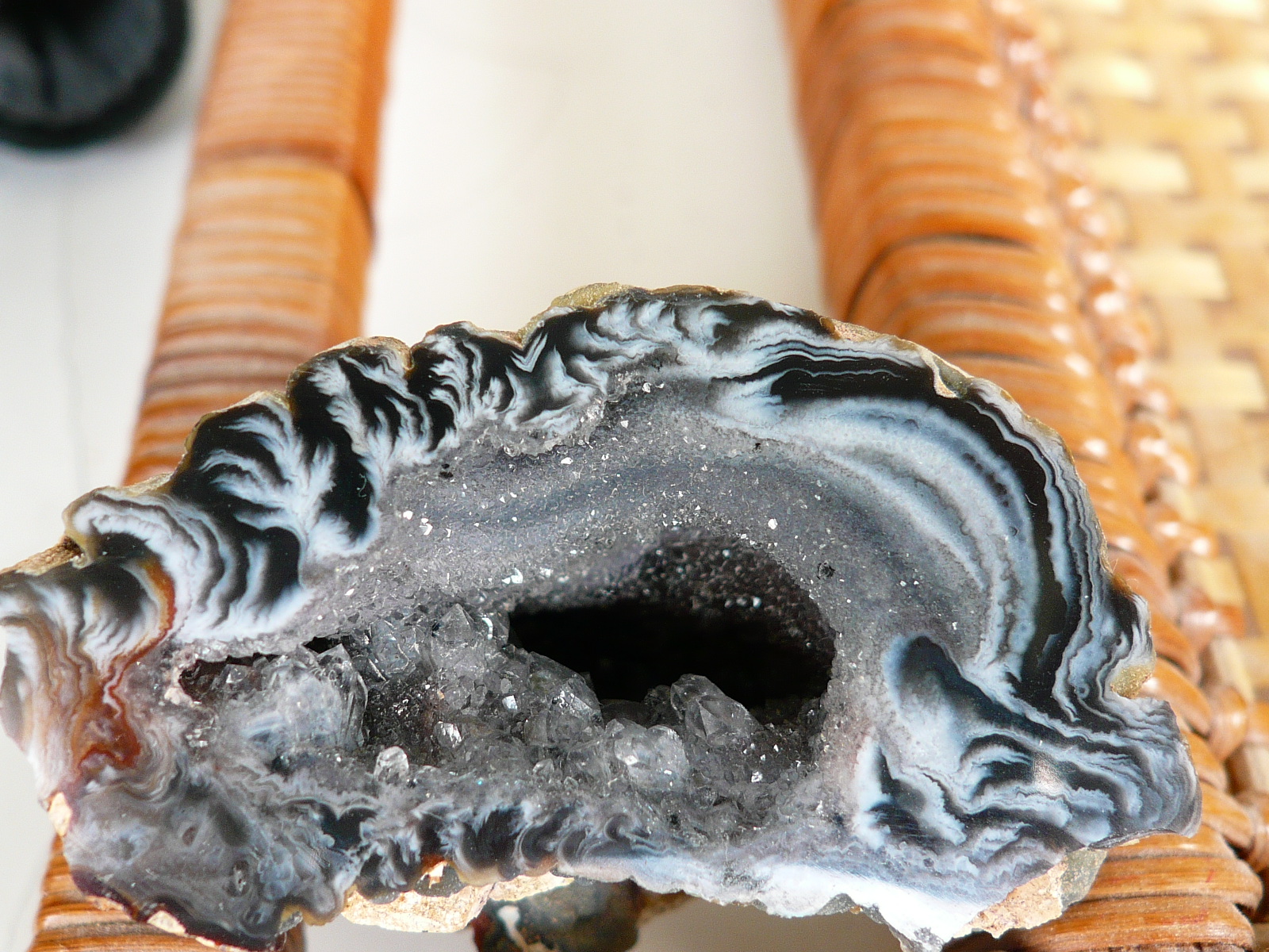 В общем, я сделала так - луч от фонаря направила внутрь жеодки, одновременно фотографируя...
