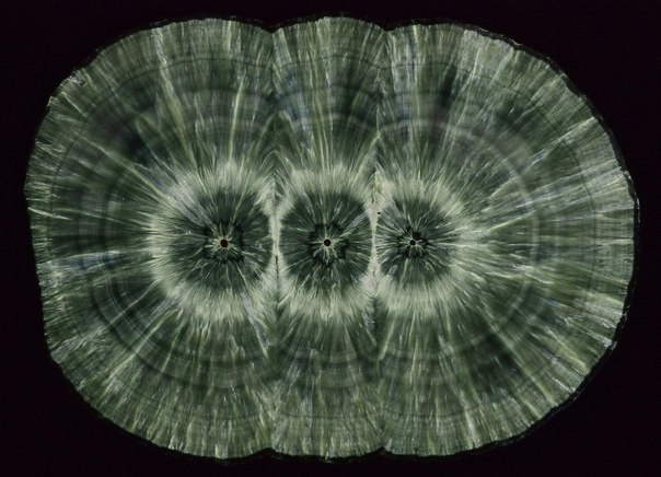 Срез по сферолитам клинохлора, 13,2 x 9,5 см. Коршуновское м-ние, Иркутская обл., Россия.