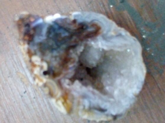 DiamonD, та часть, которую вы видите как рисунок - это агат, а полость с кристаллами - жеода. Жеода образуется на агатовой или халцедоновой основе. В камне распределение может быть в любых пропорциях между жеодой и основой: жеоды бывают большими с тонкими стенками, а могут быть совсем мелкими. Но в любом случае запомните, что есть что, и не путайте себя и народ.