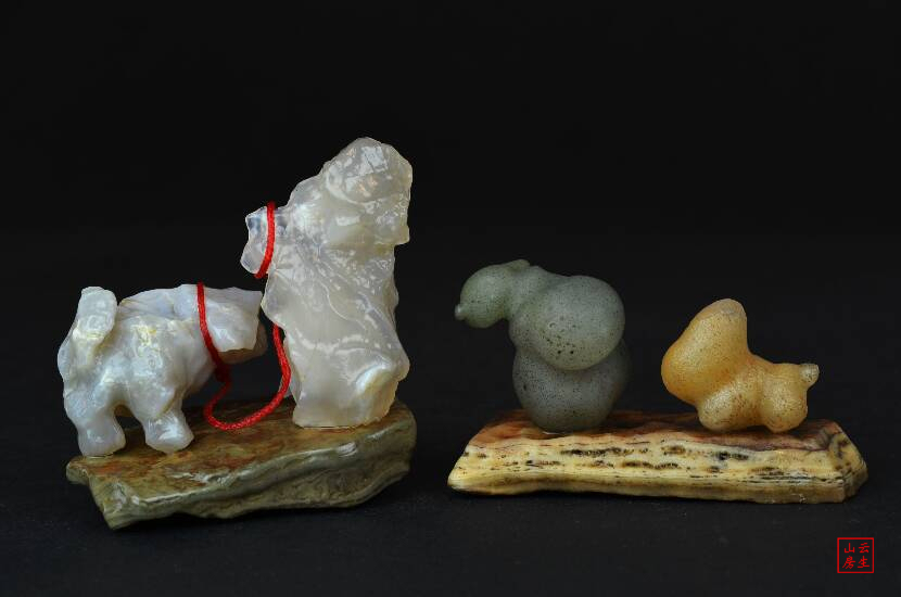 Всем спасибо за отзывы! :) Новая работа "Ха Па" и "Ло Цзе" - Мопс и Пикинес Комбинация из пяти камней. В Китае пекинесов очень почитали и называли "львиными псами" за их храбрость и внешний вид. Только приближённые к Императору могли держать у себя пекинесов. Красивая легенда так объясняет их появление: когда-то крупный лев влюбился в бабочку, но разница в размере была препятствием их любви. Тогда животные пошли к Будде и попросили его помочь им, и Будда позволил льву уменьшиться, став пекинесом, а бабочке – увеличиться. По другой легенде пекинес появился в результате союза льва и обезьяны. Упоминание о пекинесах находят в древнекитайских старинных рукописях, начиная с двести тринадцатого года нашей эры. В них говорится, что Конфуция и Будду сопровождала маленькая, коротколапая собачка с длинной шерстью. Так что пекинес – собака Бога. Маленькие собаки с короткой шерстью, мопсы, были очень любимы знатью в Китае и чрезвычайно популярны. Если пекинесы – это собаки императоров, которые считались священными животными и могли находиться только во дворце, то мопсы стояли на ступень ниже. Но были недоступны для простых смертных из-за своей дороговизны. Складки на коже мопса, в частности, морщины на лице собачки, внешне были похожи на иероглифы. Это делало их приближенными к богу, а морщины называли императорским знаком. Эти маленькие собачки, очень услужливые и послушные быстро стали любимцами почти в каждом богатом дворе.