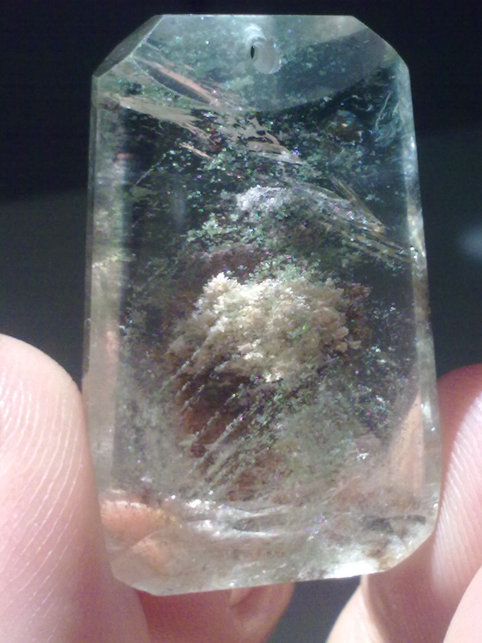 Очень занятный камешек,а там была бы фантазия.Жаль фотик все эти блестки не передает.