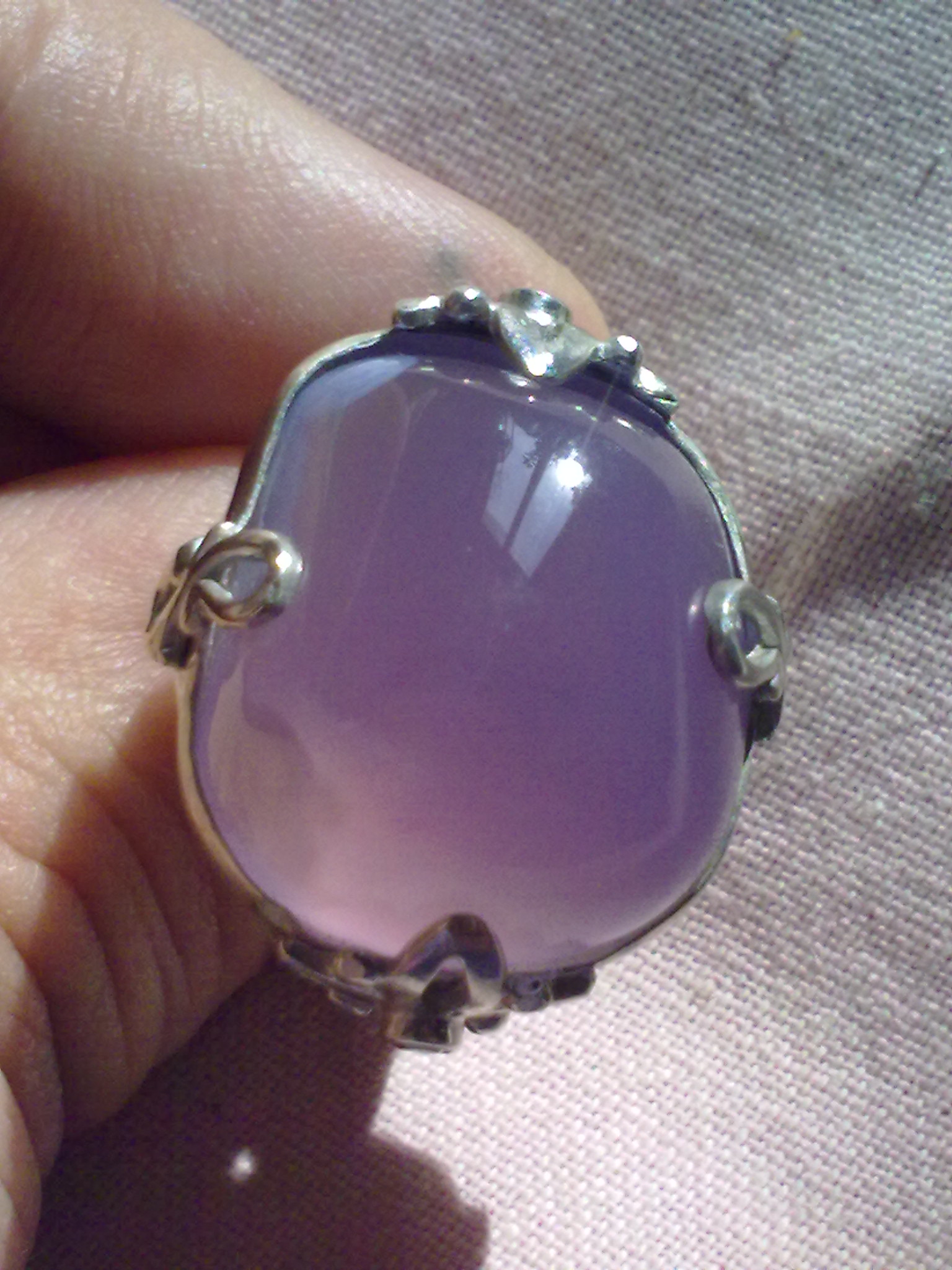 Удивительный камень,халцедон какое богатство оттенков в их чудесной дымчатой глубине! Голубой камень дает покой и хороший сон,смотрю на него и как-будто ныряю в холодную глубину,аж дух захватывает!Серый халцедончик,скорее камень полета,на просвет в нем угадываются горы и летящая над ними птица.Серый-это лишь название,а сколько в нем оттенков: голубой, зеленоватый и тут же тёплый,желтовато-оранжевый,один цвет перетекает в другой,как в туманной дымке!Лиловый халцедон у меня недавно,и о нем я знаю мало:он из Африки и фантастически красив!Очень редкий камень,если кто-то знает что-нибудь о подобном камне,поделитесь пожалуйста любой информацией! Наверняка у кого-нибудь тоже есть халцедоны или его разновидности,давайте соберём в этой темке его фото,и знания об этом чудесном камне!