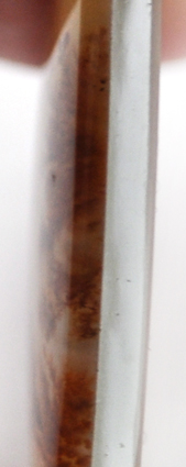 Вот, например, волжский агат на мраморной подложке. Камень приобрел красивый розоватый оттенок. Без подложки он был бы просто серым.