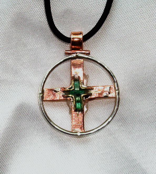 "Старый крест" - организация и защита внутреннего пространства. Кованая медь, серебро, изумруды, петалит.