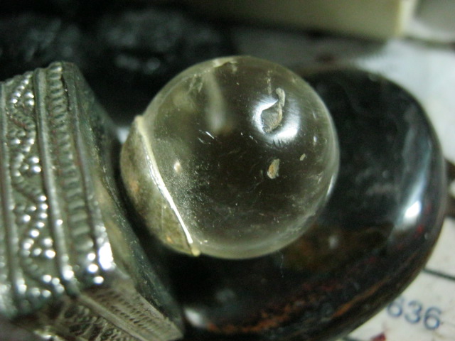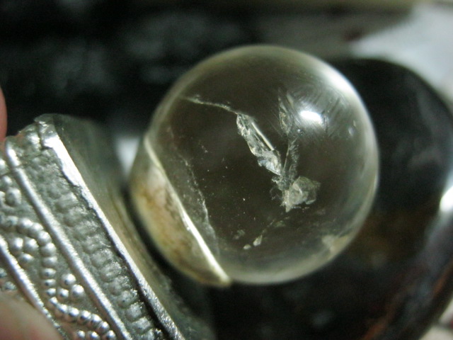 согласен, это не приятно очень когда замечаешь подобное на любимых изделиях, но это можно рассматривать так, значит камень хрустальный шарик в диалоге) он переносит невзгоды его каменной судьбы, и видимо с достоинством продолжает вам служить