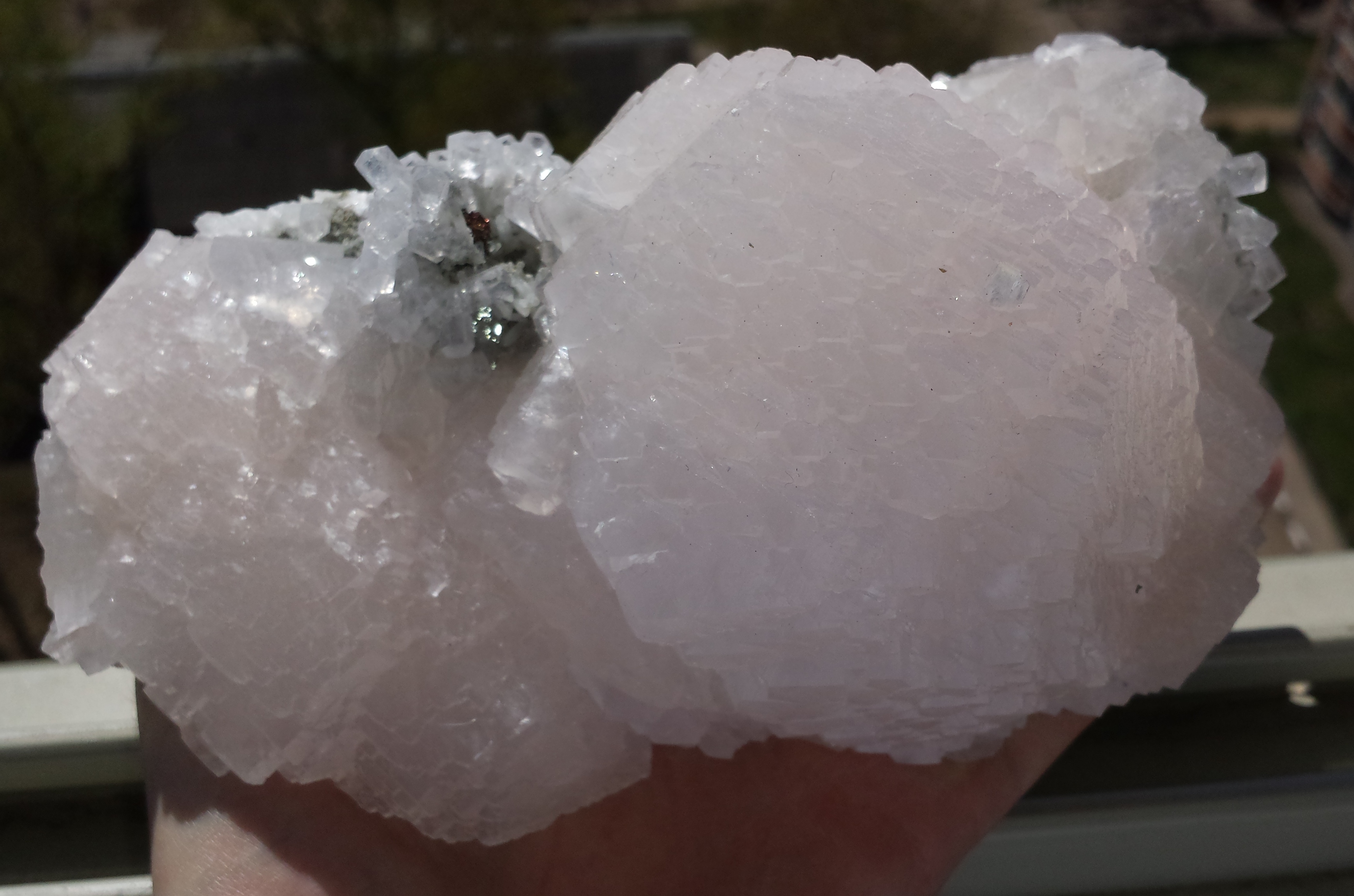 Родохрозит натечный, 115*90*95 мм, Казахстан. Розоватый кальцит прозрачный с матовыми головками и блестящими гранями кристаллов, 140*95*95 мм, Дальнегорск Светло-розовый блестящий кальцит, 165*95*85 мм, Дальнегорск Лавандовый аметист, ежик 180*95*90 мм, Дальнегорск