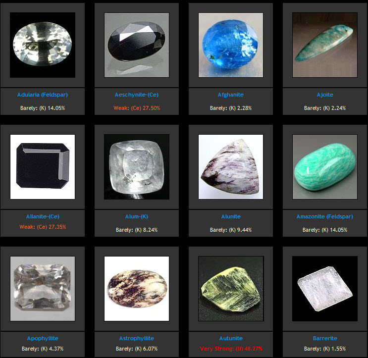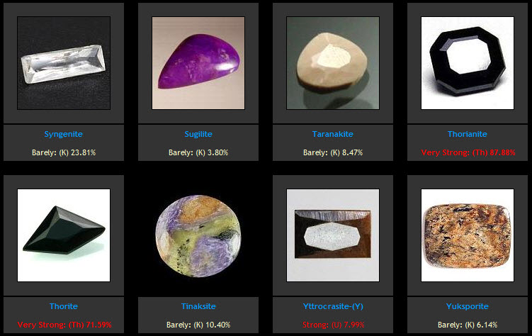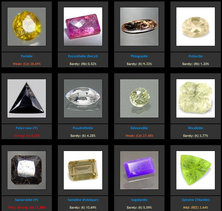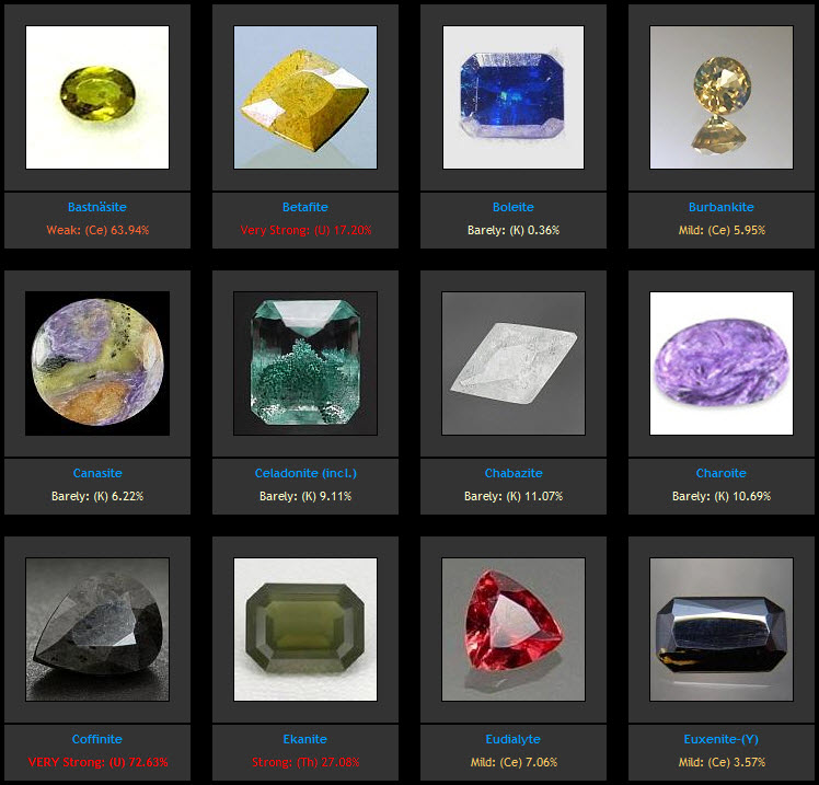 Кстати, перечень не полон! Нередко заметно излучают бериллы. Особенно желтые - гелиодоры, оставаясь при этом в основном совершенно безопасными.. А вот редкая разновидность - "золотистые бериллы" содержащие в виде микропромесей значимые количества урана, и значимые настолько, что уран в этих камнях является хромофором - уже являются серьезными источниками излучения.