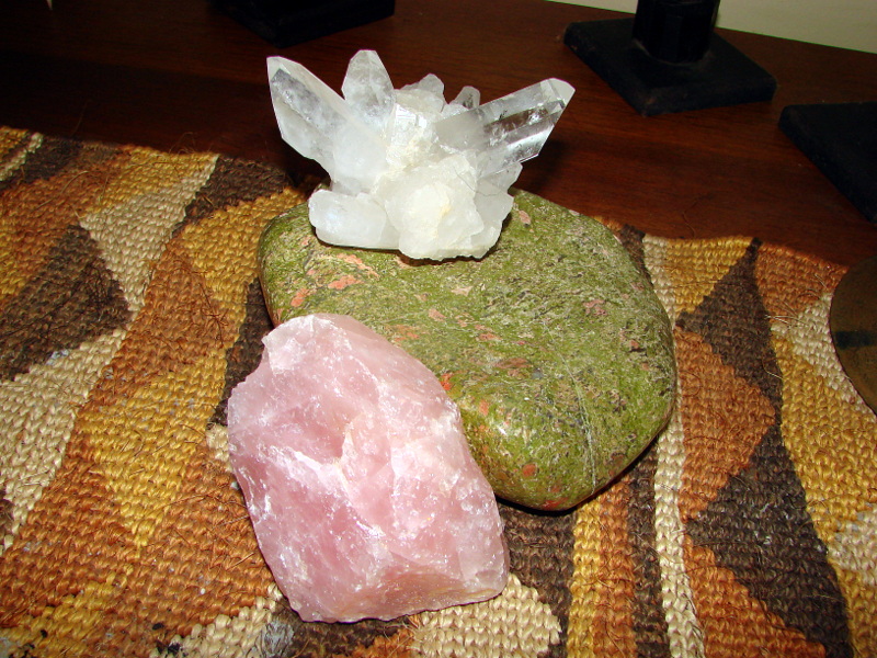 Унакит я не очень люблю, мне кажется он тяжеловат. Хотя галтовка выдающаяся... А вот розовый кварц и друзка хрусталя замечательны!!!