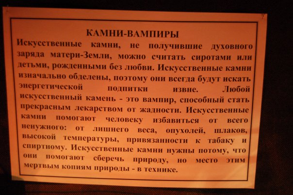 сегодня буквально попалось (вывеска из какого-то музея камней):