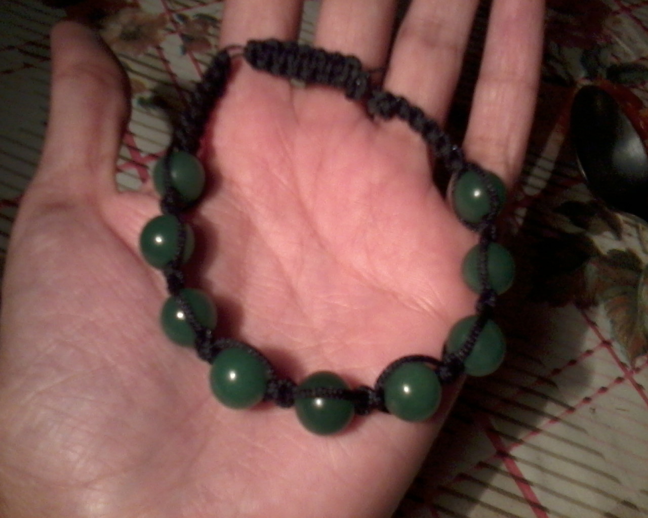 Здравствуйте! Сегодня приобрела такие вот бусины. Сказали, что нефрит. Сплела себе шамбалу. Но сейчас сижу и думаю, а нефрит ли? Может авантюрин зеленый? Царапала иглой, следов не осталось. Помогите узнать, что за камушек. Спасибо заранее.