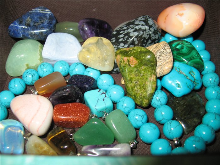 Поддельная бирюза, авантюриновое стекло коричневое и синее, жжёный аметист, опаловидное стекло...