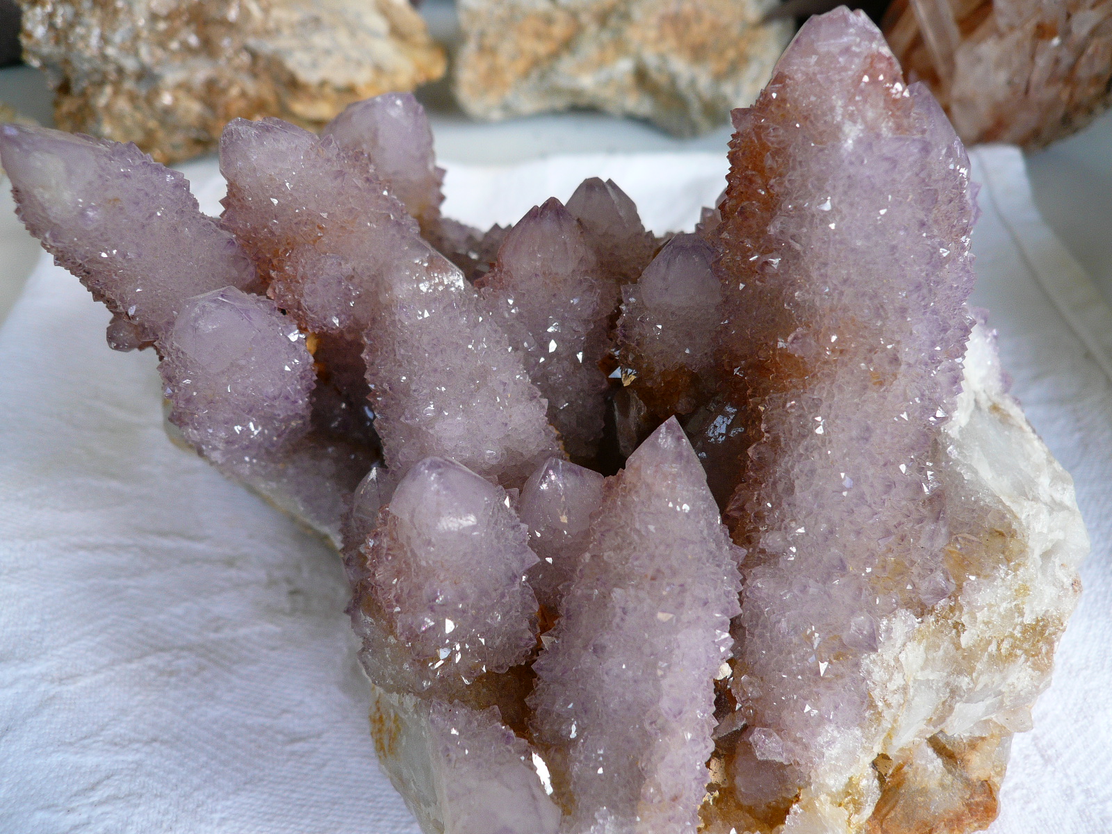 Просто недавно приобрела один образец, и разглядывая его, подумала, что он тоже идеально подходит под описания кристалла-моллюска с сайта. Этот друза кварца, аметист-кактус! Он ведь как образовывается? практически на большие кристаллы аметста нарастают маленькие кристаллики того же самого аметста! получается такая вот аметистовая рубашка на основных кристаллах! Поэтому, думаю, этот кактус вполне можно на конкурс выставить в категорию моллюска
