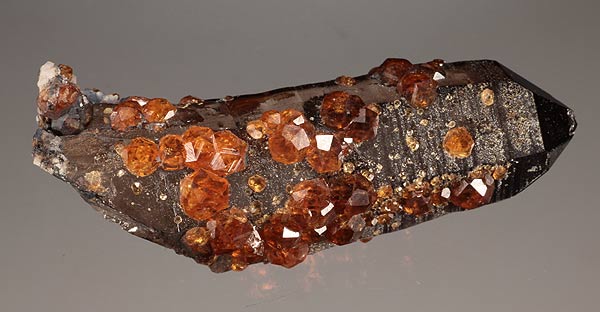 по сути, если подумать, это тоже кристалл дымчака с наросшими на него гранатиками, вроде бы вполне под описание подходит